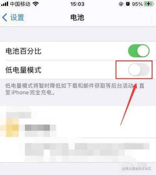 注意,由于限制了电池消耗,某些功能可能无法工作会需要更长的时间来处理,例如电子邮件收取、嘿Siri、后台程序刷新、自动下载、自动锁定、iCloud照片等.