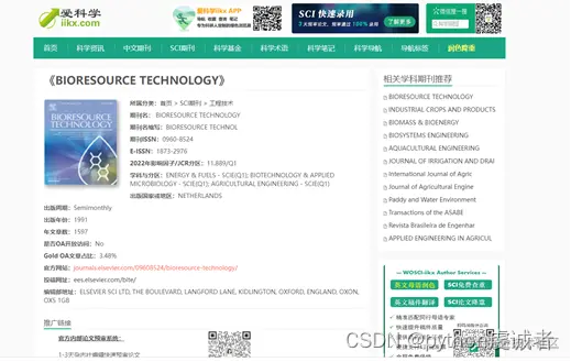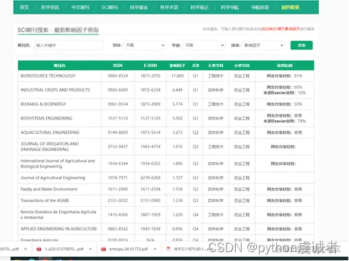 点击sci期刊,找到sci期刊导航,(以农业工程为例)