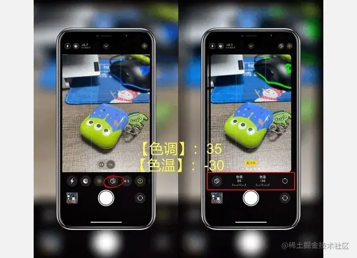 最后再点击三个长方形的【摄影风格】选项,向右滑动选择最后的【亮冷色】,然后手动将色调参数改成35,色温改成**-30**。