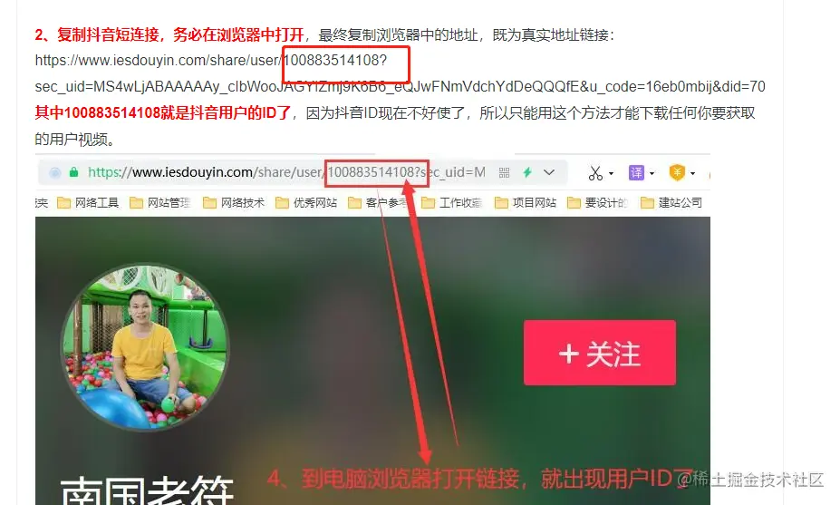 根据网上的方法,分享用户页面的短链,然后在浏览器中打开,但是却无法找到用户id。
