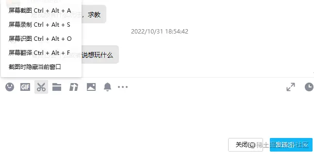 QQ录屏其实是QQ聊天工具的附属产品,我们看到QQ录屏的快捷方式很简单,屏幕录制使用 ctrl+alt+S这个组合键,即可调出录屏功能。
