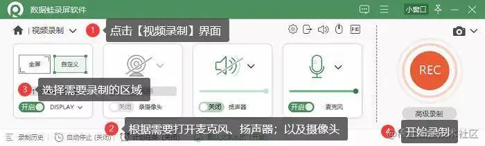 数据蛙录屏软件,是一款专业的录屏软件,该产品功能齐全,操作简单,软件支持视频剪辑、视频转换、视频压缩、添加水印,区域录制等。可用于视频教学录制、会议录制、游戏录制、在线视频录制、个人作品演示录制等各种视频处理功能等。
