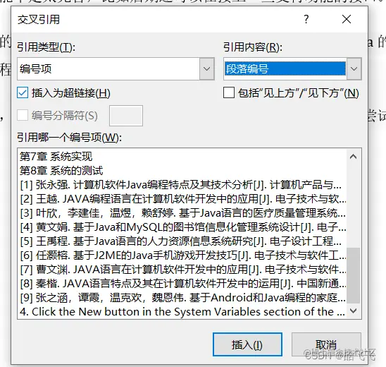 在论文中参考文献的引用 码农阿宇 2023-05-10 363 阅读1分钟 先全选参考文献 点击定义新编号格式,并在编号格式1的前后输入英文格式的方括号; 然后再需要引用的句子的句号前面点击插入的交叉引用 选择引用类型选择编号项和引用内容选择段落编号,在选择所引用的参考文献就好 在选中[1]在按住ctrl和shift加上+号即可 例如: