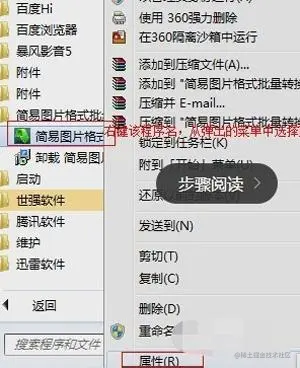 1,在桌面找看能不能找到软件的快捷方式如果不能就打开开始菜单中选中要卸载的程序右键点点击属性。
