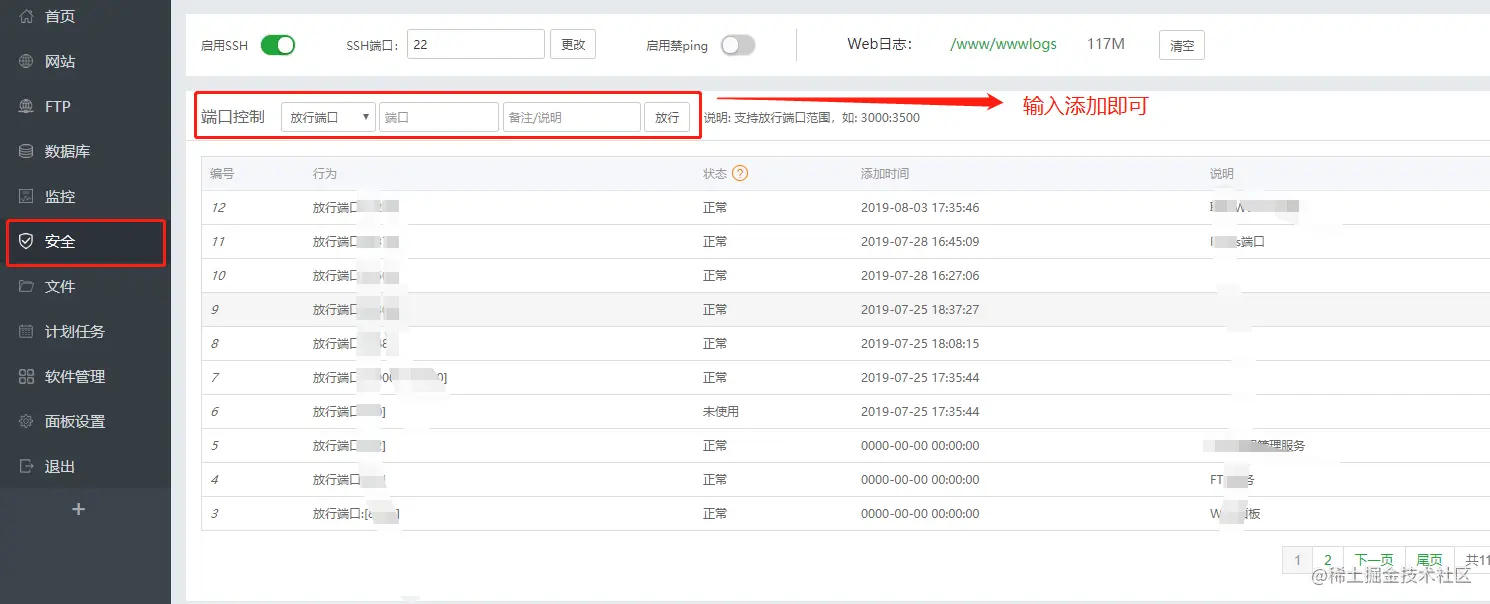 方法:如果CentOS安装了宝塔面板,安全->添加端口->放行。如果使用命令添加,最后 firewall-cmd reload 命令重启防火墙即可。