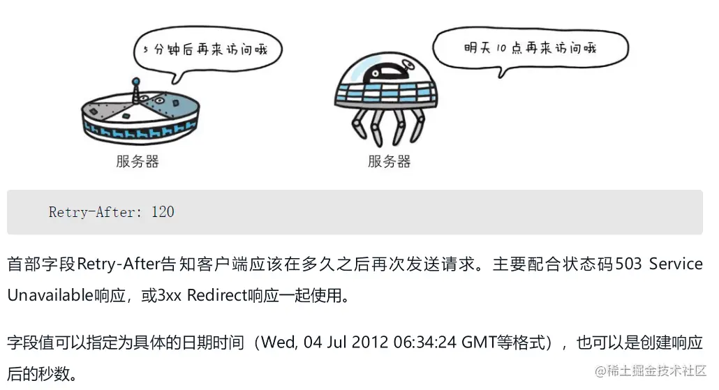 该状态码表明服务器暂时处于超负载或正在进行停机维护,现在无法处理请求。如果事先得知解除以上状况需要的时间,最好写入Retry-After首部字段再返回给客户端。