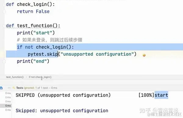 ## 代码中添加 跳过代码块 pytest.skip(reason="")