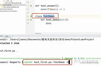 pytest 文件名.py - 运行某个模块里面某个类: