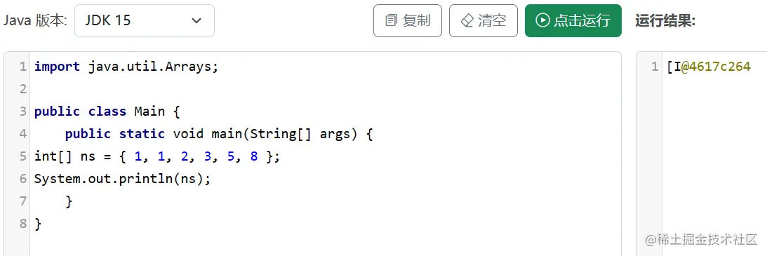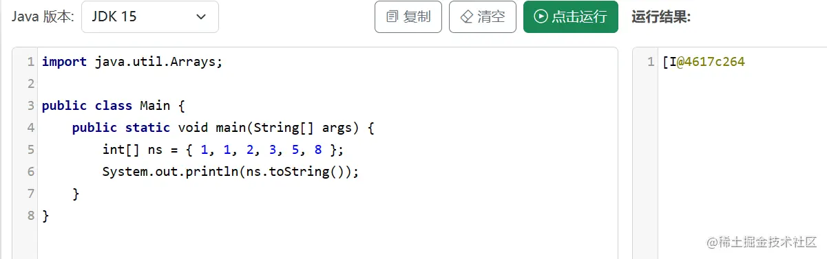 - 得到的是数组在JVM中的引用地址,其实直接打印也会是这样的结果