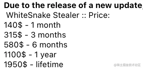 白蛇 (WhiteSnake)是在今年 2 月份开始持续活跃、以信息窃取为目的的后门软件,其通过 telegram 等渠道进行售卖,按照不同订阅期限有不同定价。在近期更新的版本中还针对中文系统的适配进行了优化。