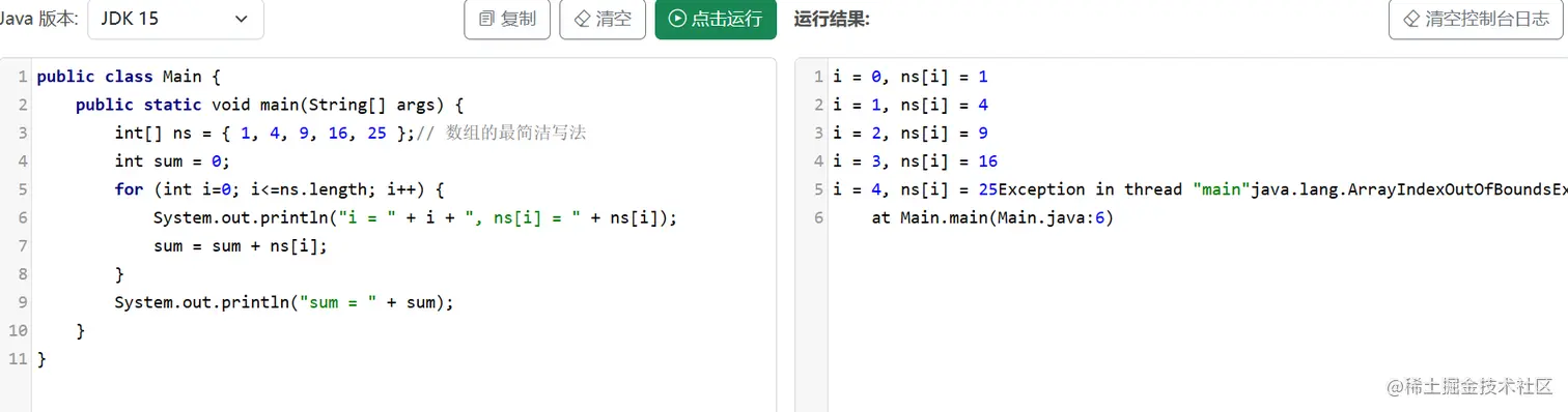 i<ns.length不要写等于,不然就会出现如下情况