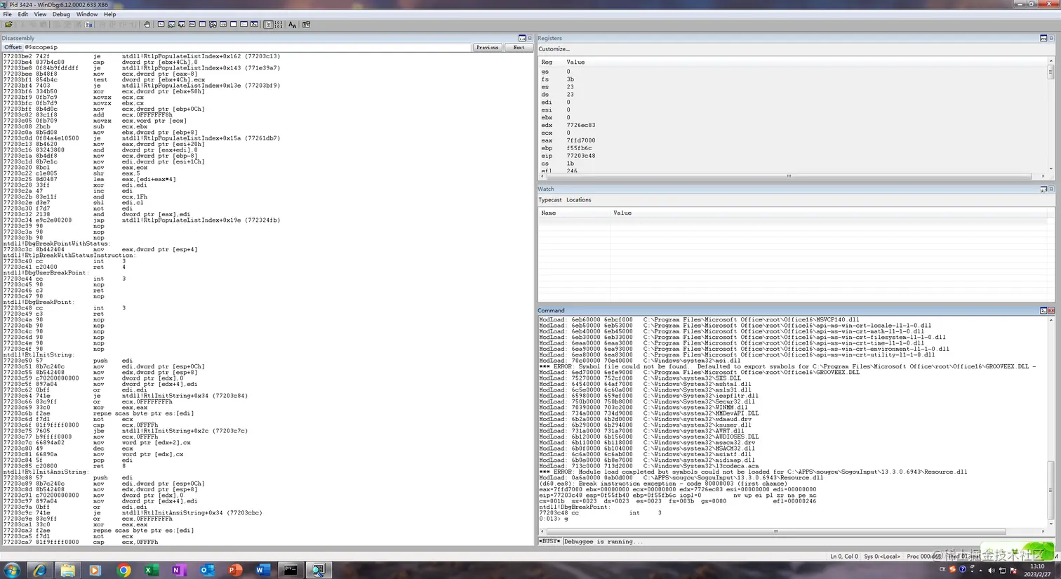 F8进入这个函数,我们看这里,可以看到这里又把ebx+90h的地址给了edi: