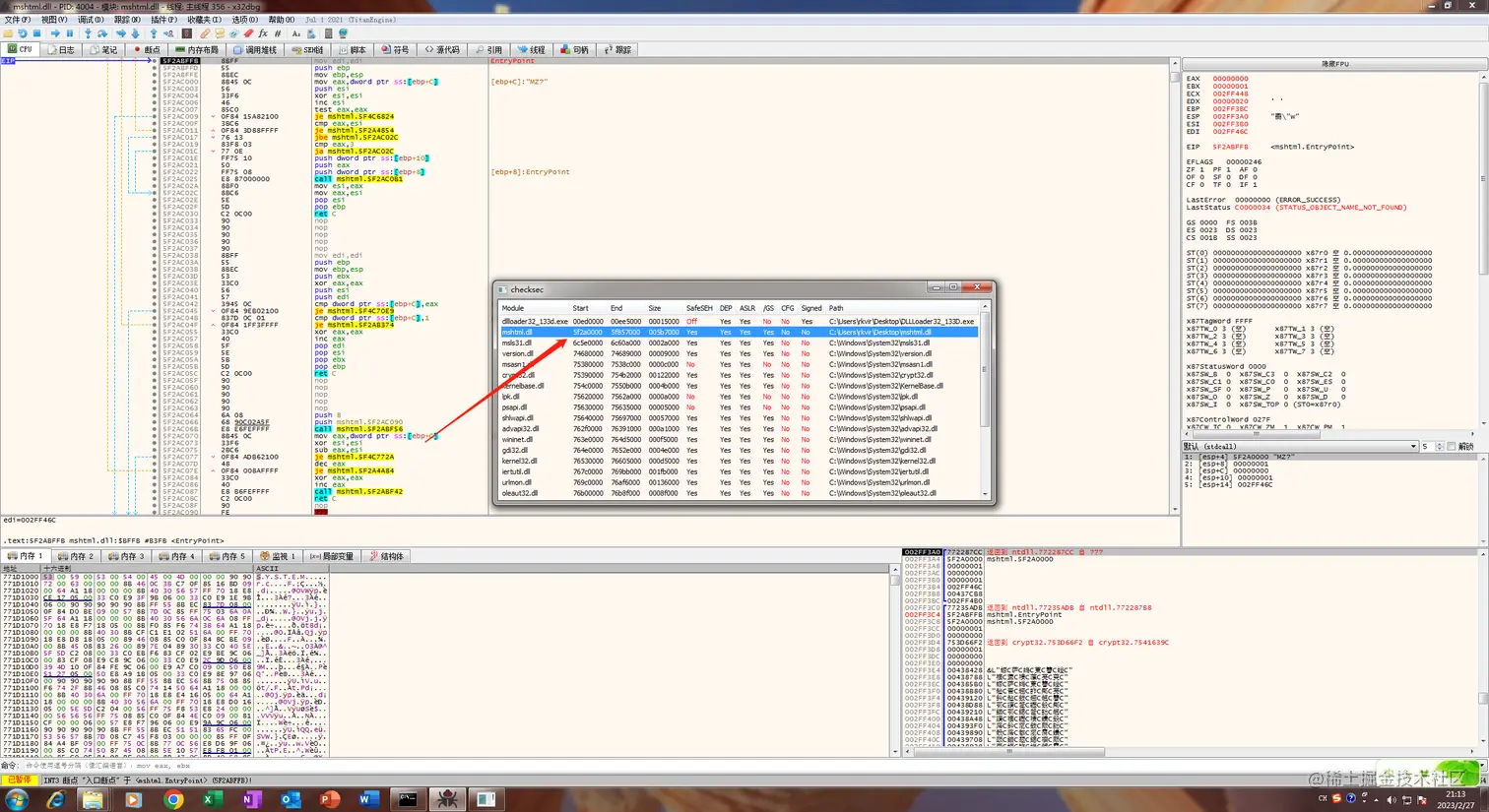 首先通过x32dbg插件checksec查看漏洞保护,所以介次需要绕过DEP保护和ASLR: