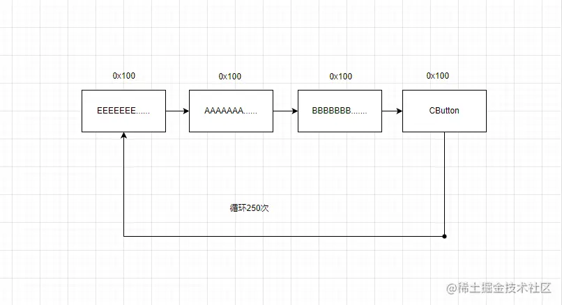 可以看到,申请的堆块里面的内容就是EEE…,也就是我们的堆布局完成了,接下来看看CButtonLayout大小: