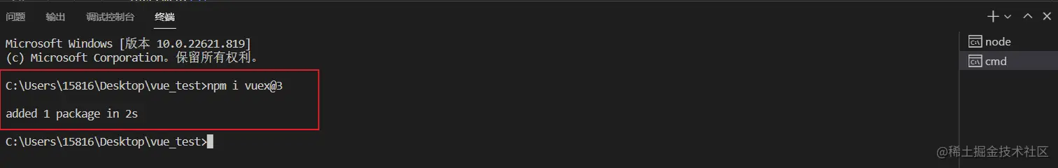 我这里用的是vue2,所以就安装vuex的3版本,打开终端,输入: