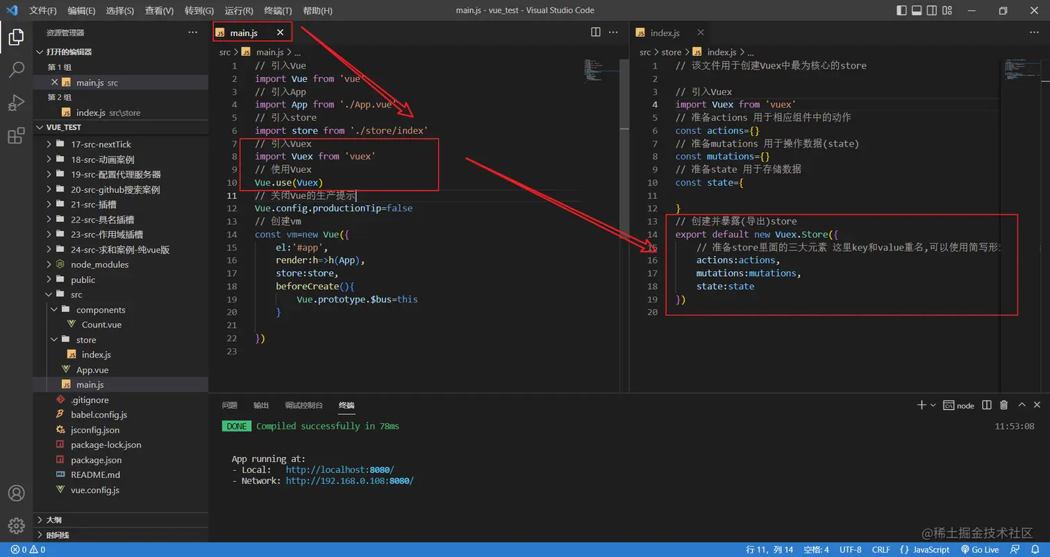 安装完成之后,就可以import和use了,这里Vuex的v大小写都可以,官网文档是大写的,非要小写也没错,只是一个命名的问题