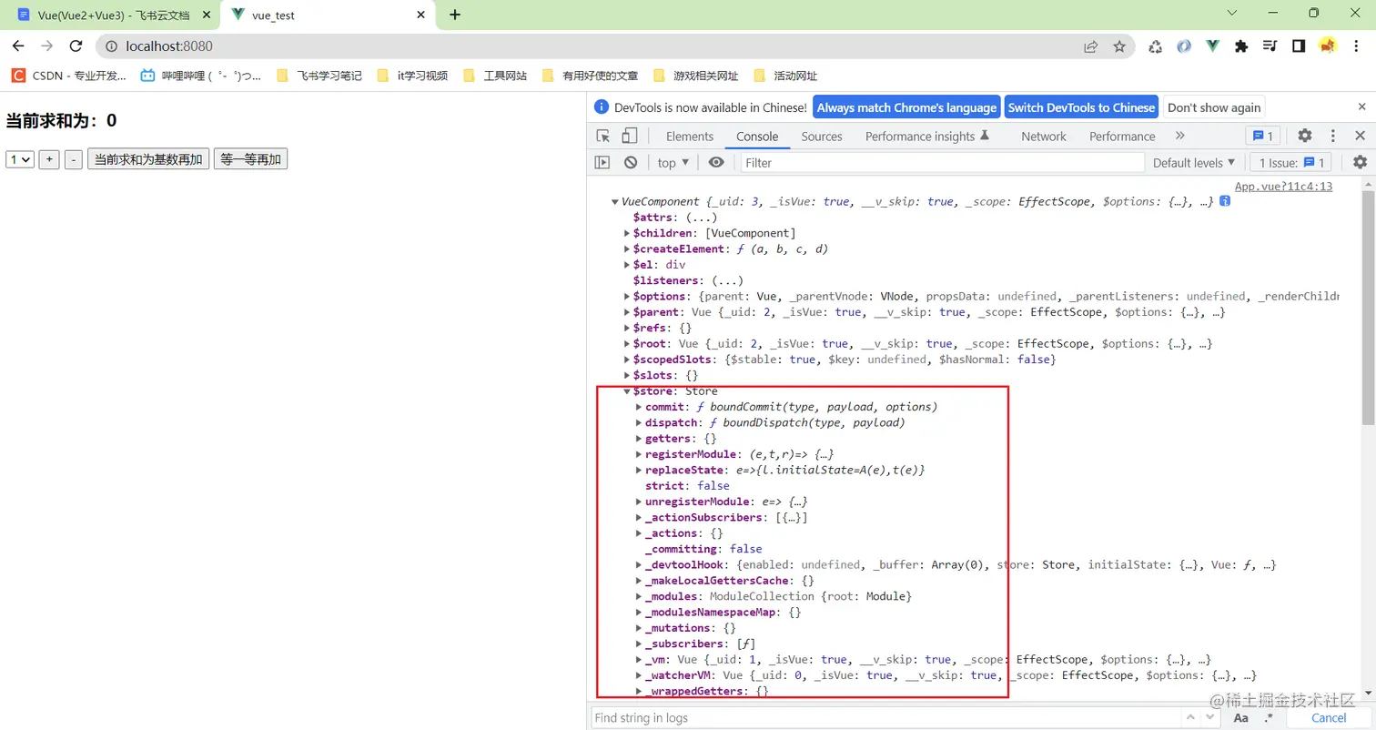 并且看到的dispatch和commit等相关api,这就意味着可以和vuex进行操作了