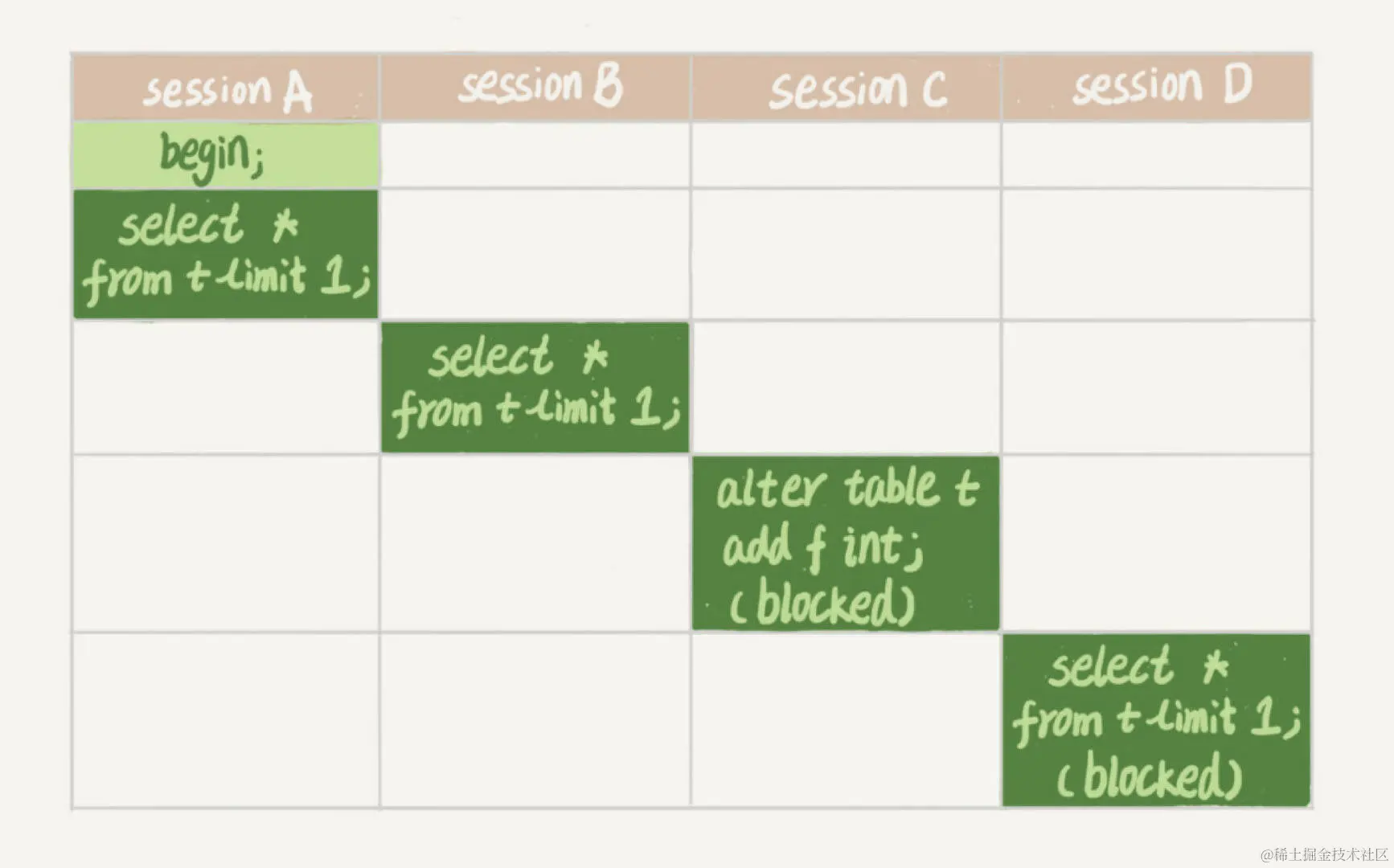 确实在alter的时候需要获得DML写锁,但是在进行复制数据之前,这个DML锁退化成了读锁,就是为了不阻塞DDL的。但是为什么不直接解锁呢?是为了防止其他线程对这个表同时进行DDL。