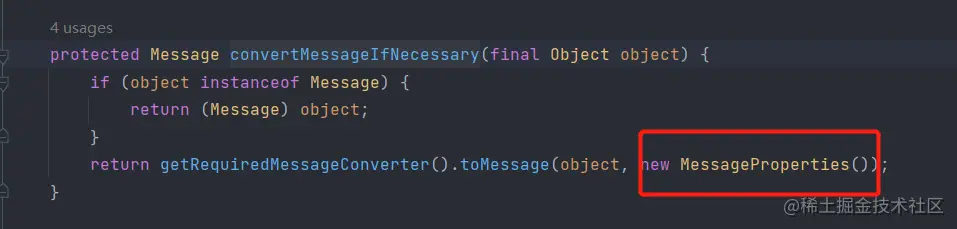 在做消息转换的时候,我们注意到,传入了一个MessageProperties对象。