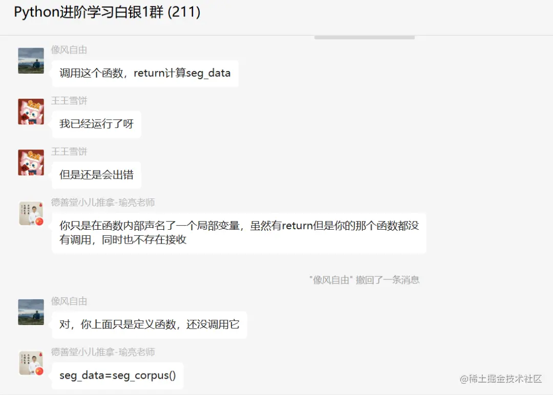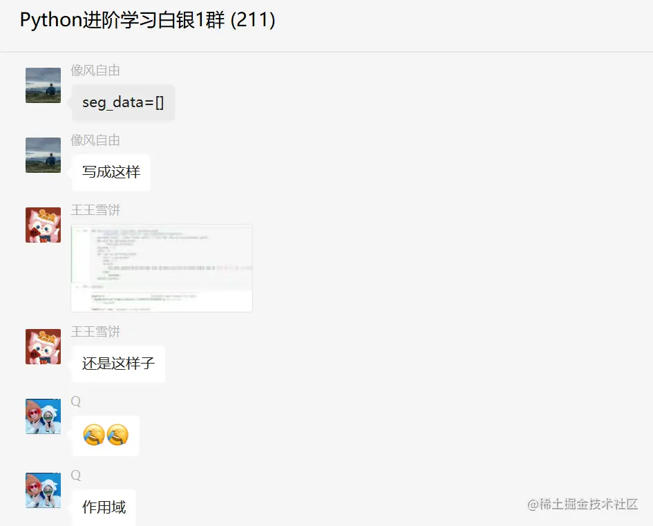最后感谢粉丝【王王雪饼】提问,感谢【像风自由】、【Q】、【瑜亮老师】给出的思路和代码解析,感谢【eric】等人参与学习交流。