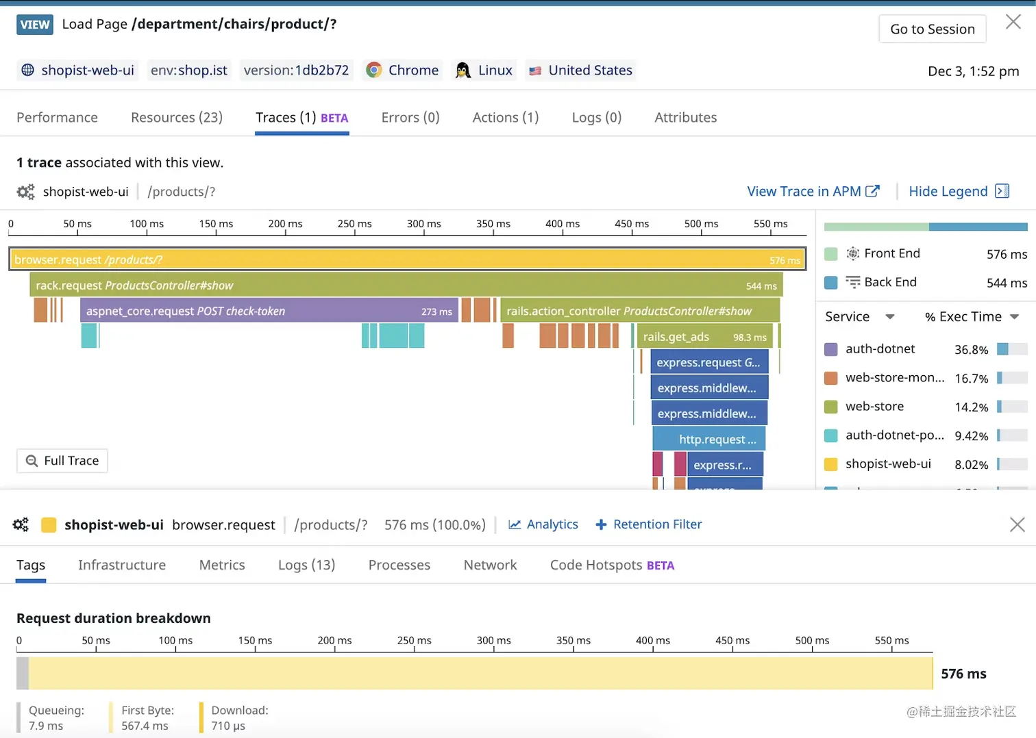 可观测性平台解决方案并不仅仅定位在监控运维领域,而是能够覆盖整个软件研发过程,真正实现为工程师赋能,不是为了监控而监控,这也是和其他传统监控厂商不一样的地方。要站在实际用户的角度上,可观测性应该能够为工程师提供以下的能力(截图为海外先进的可观测性厂商 Datadog 产品):