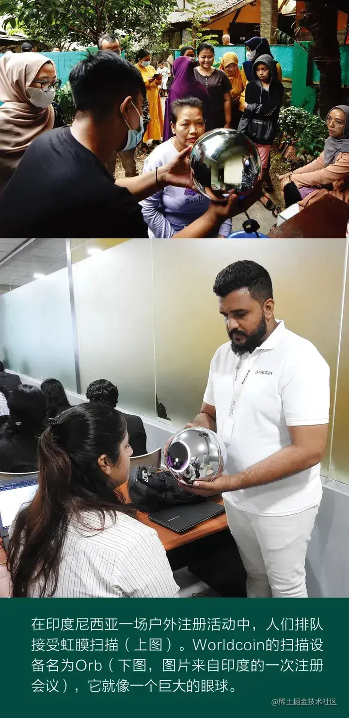 Orb是这个方法的核心。其闪闪发光的表面背后是一个光学定制系统,可以捕获高清晰度的虹膜扫描图像。要注册Worldcoin,注册者需在智能手机上下载该公司的App,然后创建一对关联的加密密钥:一个可共享的公钥和一个隐藏在用户设备上的私钥。公钥用于生成二维码,供Orb在扫描用户虹膜之前读取。该公司表示已经投入了相当大的努力,使Orb能防止用修改或伪造虹膜进行假冒注册。