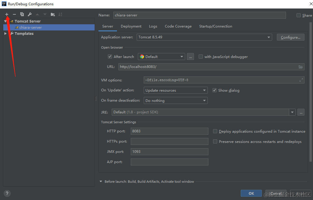 没有本地服务时 点击加号 选择目录下tomcat Server -- locale新建本地服务