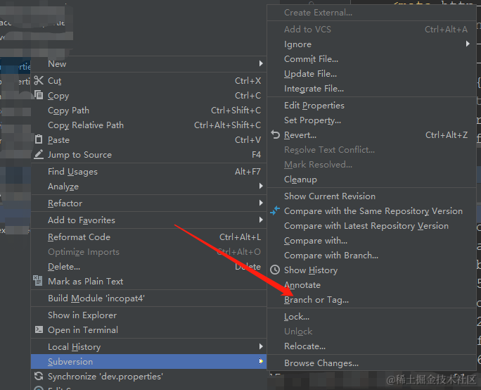 idea 项目目录右击 ---- Subversion ---- Branch or Tag ...