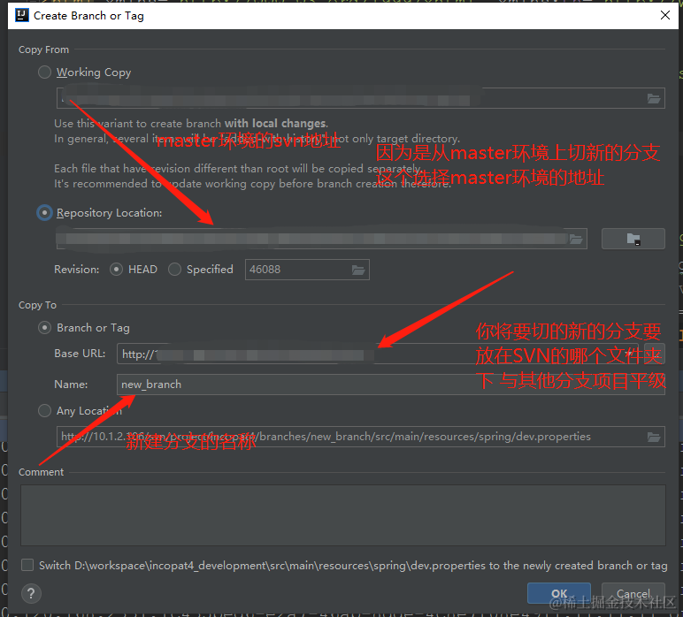 svn 在master分支切一个自己的分支