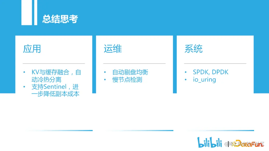 运维方面,一个问题就是慢节点检测,我们可以检测到故障节点,但是慢节点怎么检测呢,目前在业界也是一个难题,也是我们今后要努力的方向。