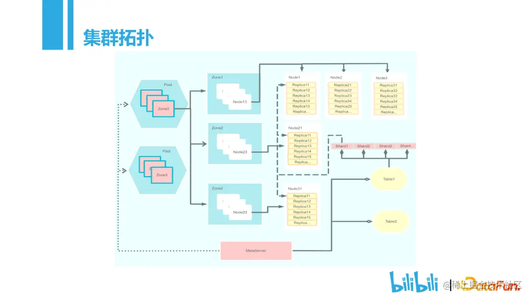 资源管理: 主要记录集群的资源信息,包括有哪些资源池,可用区,多少个节点。当创建表的时候,每个分片都会记录这样的映射关系。