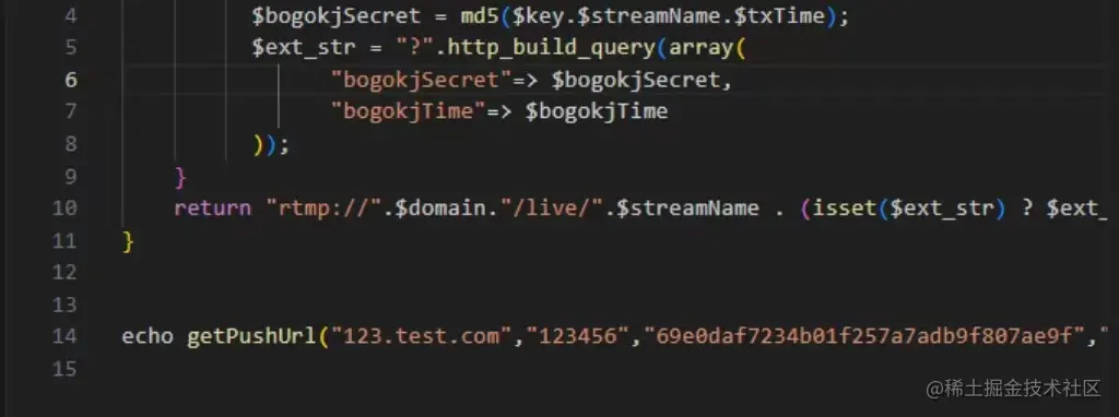 在这里我采用的是PHP语言,要想使新直播的推流,首先要获取推流的地址,代码如下: