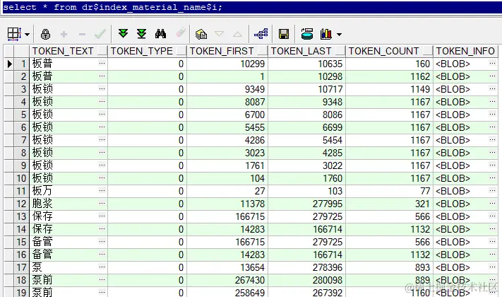 当然了我们可以在表t_material_new 上写一个oracle的触发器,当添加、删除、修改操作时,进行索引分词更新;或者创建定时任务定时更新也可以。
