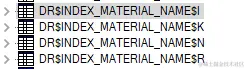 创建完索引后,我们会发现当前用户下,关于INDEX_MATERIAL_NAME 索引多了四个表,关于