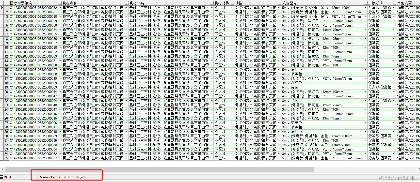 所以我们需要以耗材名称和生产企业名称字段建立索引。建立脚本如下