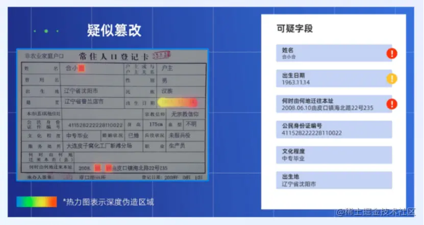 合合信息图像篡改检测技术对户口本图片篡改痕迹进行定位