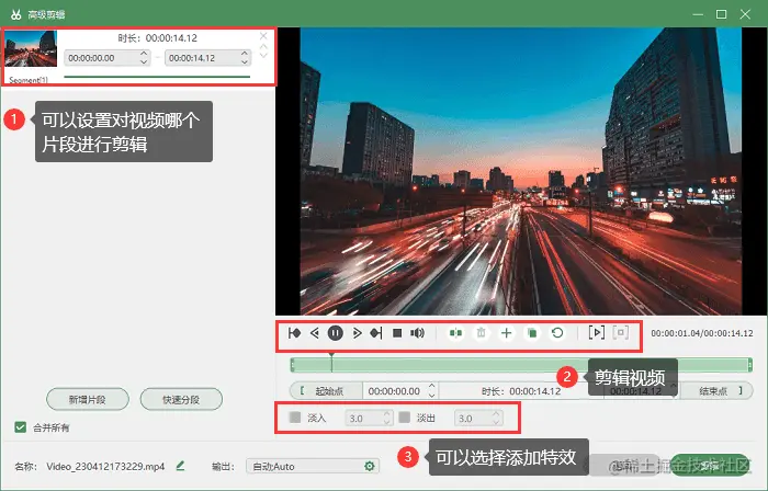步骤4.录制完成后,在【高级剪辑】页面,可以对视频进行分段、添加特效等操作,然后点击【完成】按钮。