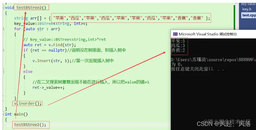 key value模型 与上述实现的二叉搜索树实现功能差不多,只是增加了一个模板参数value