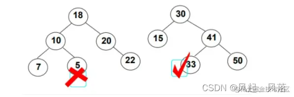第一个不满足,因为值为5的节点在值为10的节点的右边,正常来说10的右边都应该比10大