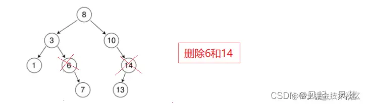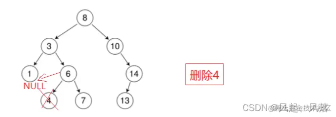 删除4后,直接将6的左子树置为NULL