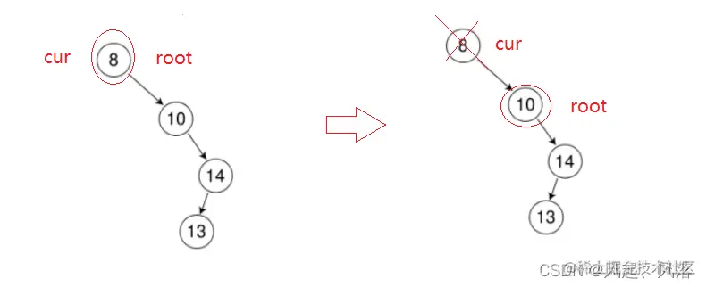 把cur的左子树的节点作为根,然后直接删除cur节点