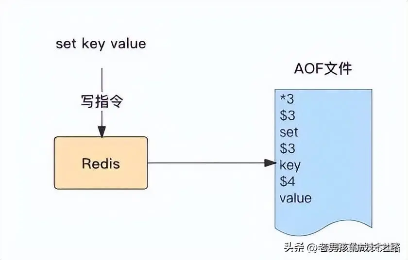 当 Redis 接收到 “set key value” 命令将数据写入到内存之后,会按照如下格式写入 AOF 文件: