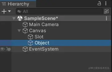 两个精灵的纹理类型都需要设置为 2D 和 UI。创建两个 2D UI 图像。一个用于对象,另一个用于插槽。