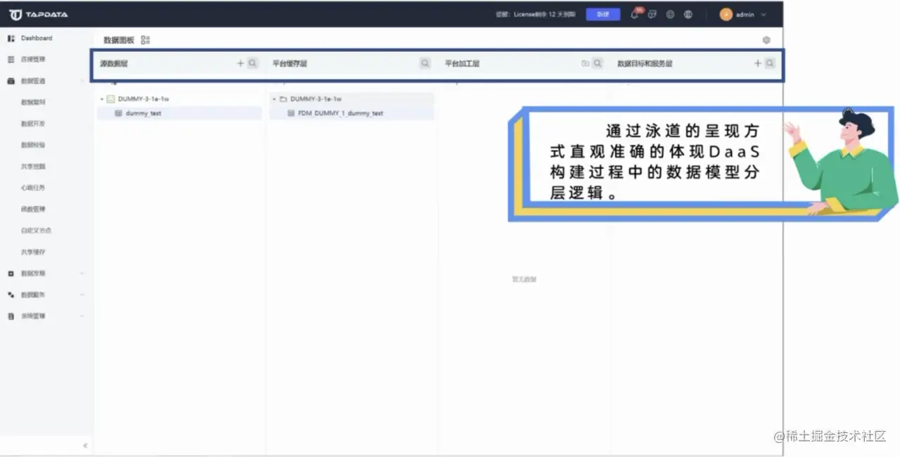 其一,LDP 通过泳道的呈现方式,直观准确地体现了 DaaS 构建过程中的数据模型分层逻辑。