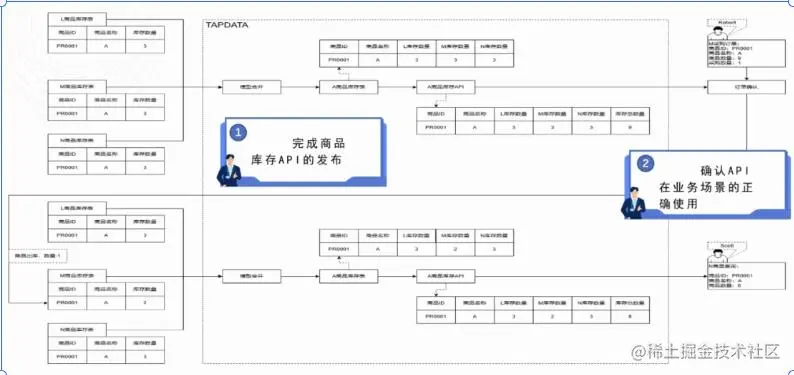 我们将整个实施过程定义为两个阶段:第一个阶段是 LDP 的部分,即使用 LDP 完成商品库存 API 的发布;接下来第二个阶段,就是要确认这个 API 在业务场景中得到了正常、正确的使用,相关数据是能够被实时获取并更新的。