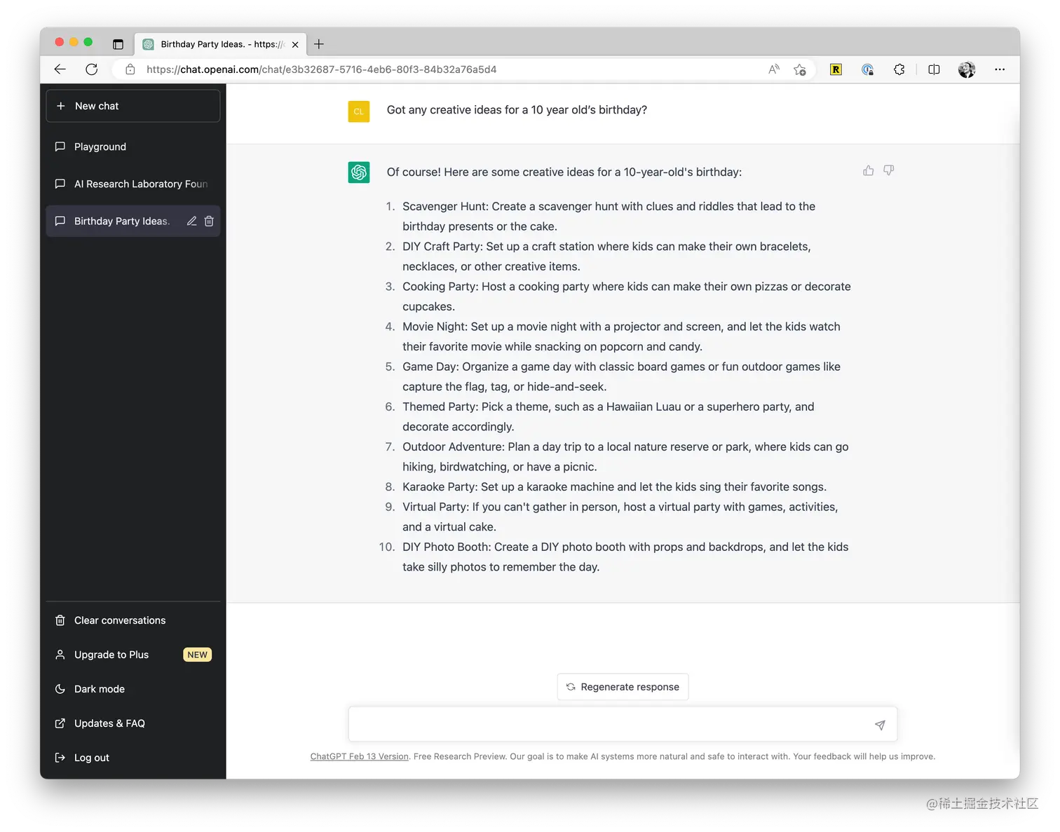 这个场景应该是使用 AI 产品最常见的方法。以 ChatGPT 为例,一般就是你提一个问题,ChatGPT 会给你答案,比如像这样: