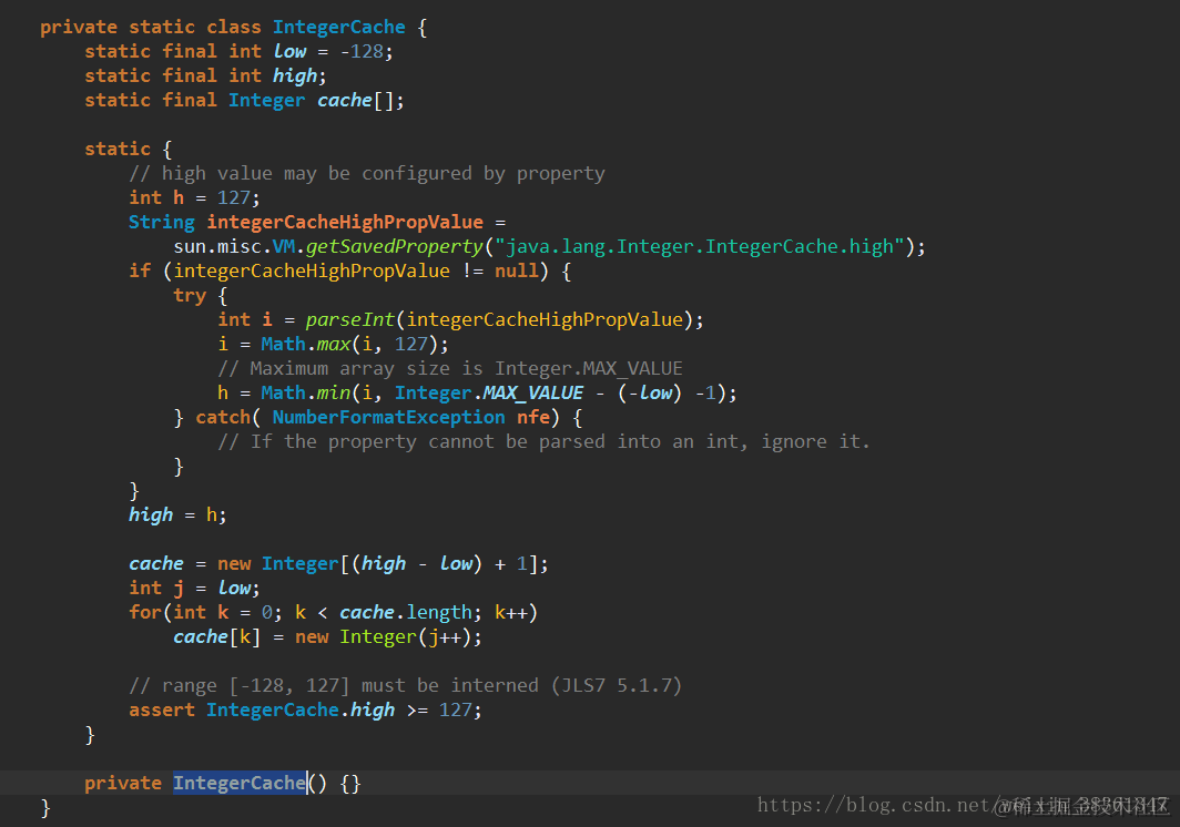 Integer缓存了-128~127之间的数,这是在类加载期间就完成的。以后需要的时候直接指向它就可以了,省去了构造对象的开支,提高了效率。