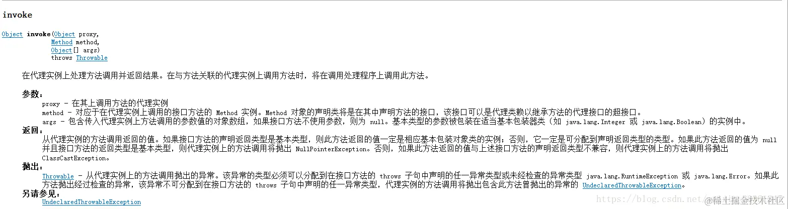 需要传递三个参数,proxy对象也就是jdk的动态代理对象,第一个 是返回的代理对象,第二个是方法(调用的方法实例),第三个是个参数。