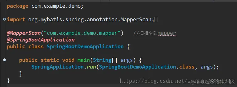 最后记得在主方法里添加 扫描 mapper文件注解