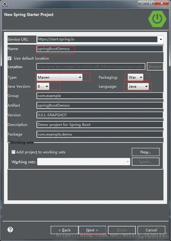 - 第二步 项目命名,Java版本,包等